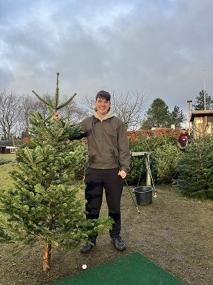 På gårdspladsen finder du et stort udvalg af træer på 1-3 meter, som allerede er fældet. I får et net om træet så træet let kan være i bilen. Skal der bores hul i stammen til fod klare vi også den.